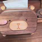 This chubby, super - cute bear is carved from rich walnut wood! More than a tissue box, it’s a clever combo of a tissue holder and a toothpick case.