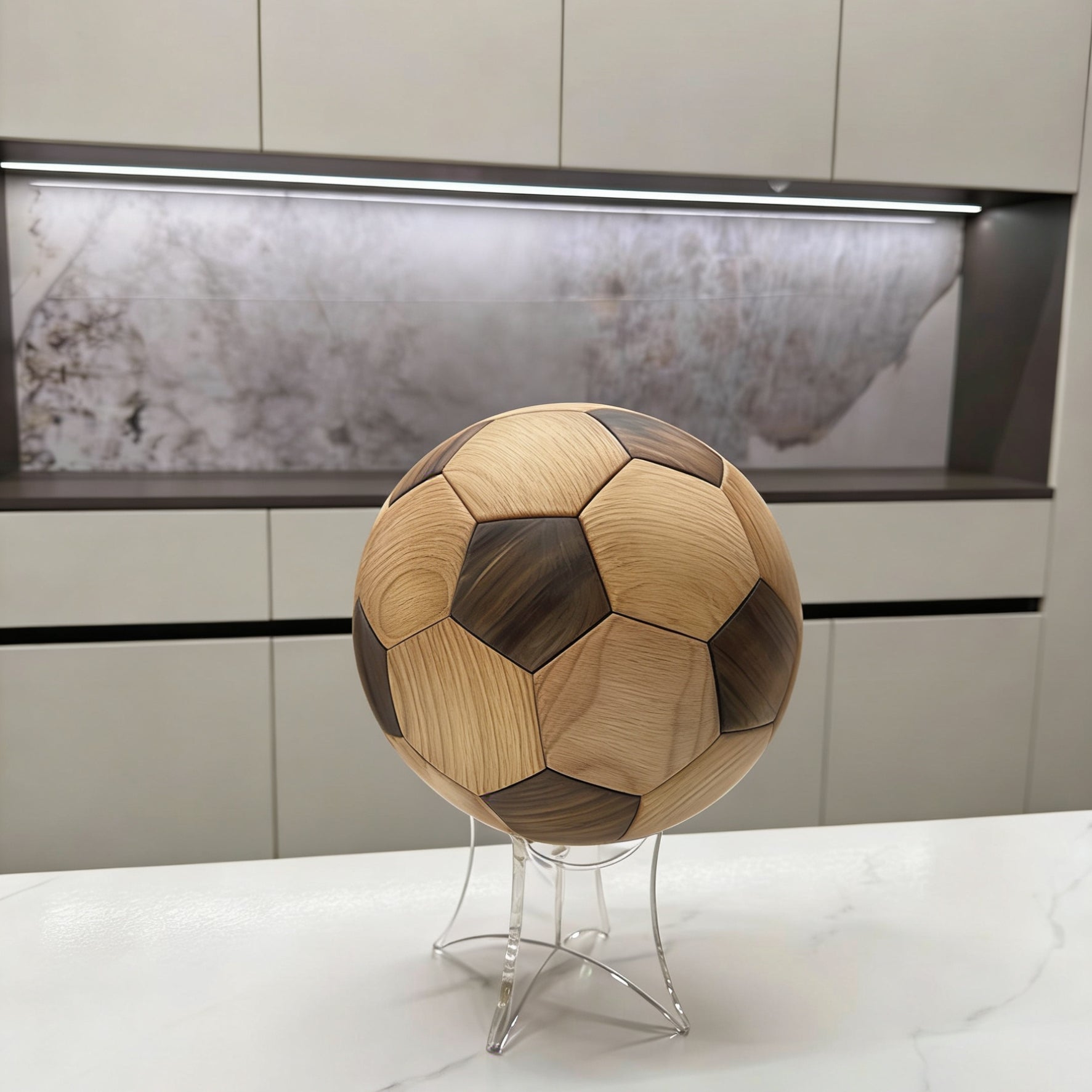 Once completed, it becomes a striking decorative piece with clean geometric panels and warm wood tones. Perfect for football lovers, puzzle fans, and anyone who appreciates thoughtful design. A gift that feels personal, timeless, and truly different.