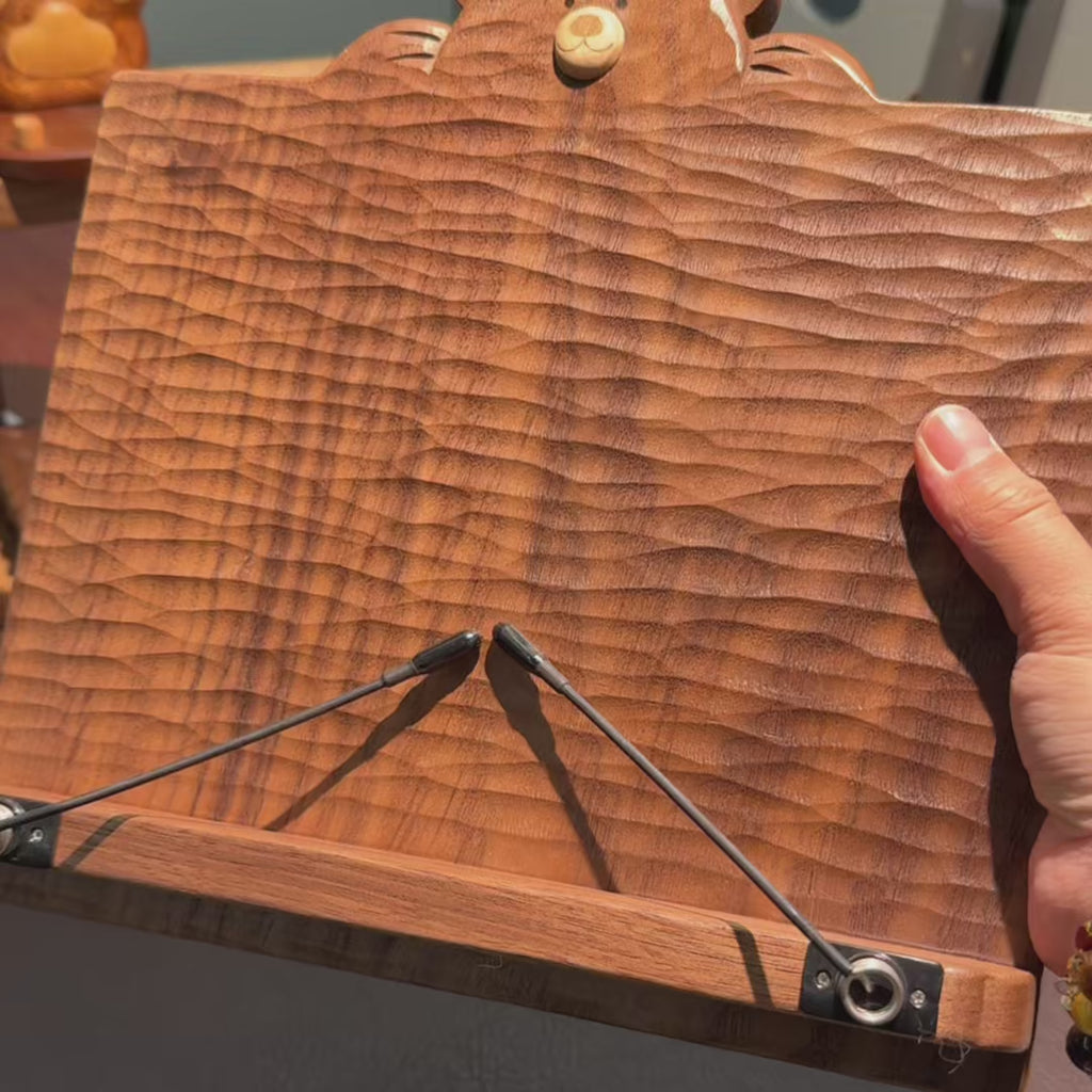Verschönern Sie Ihre Leseecke mit dem niedlichen Leseständer aus Holz – ein funktionales und zugleich verspieltes Möbelstück aus Walnuss- oder Kirschholz. Die geschnitzte Bärenfigur verleiht ihm eine gemütliche, freundliche Note und passt perfekt in Kinderzimmer, Homeoffices oder Kreativstudios.