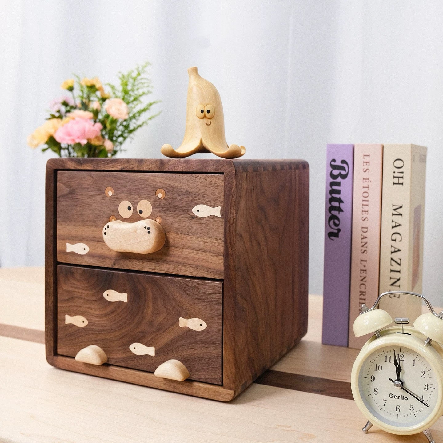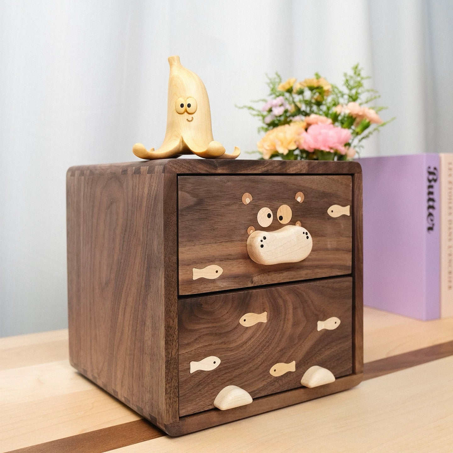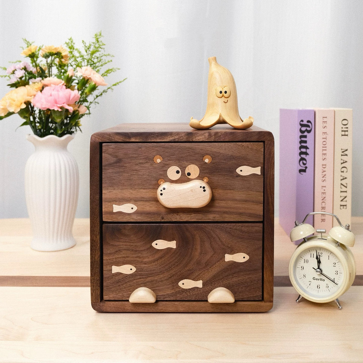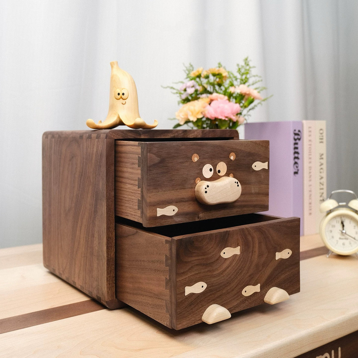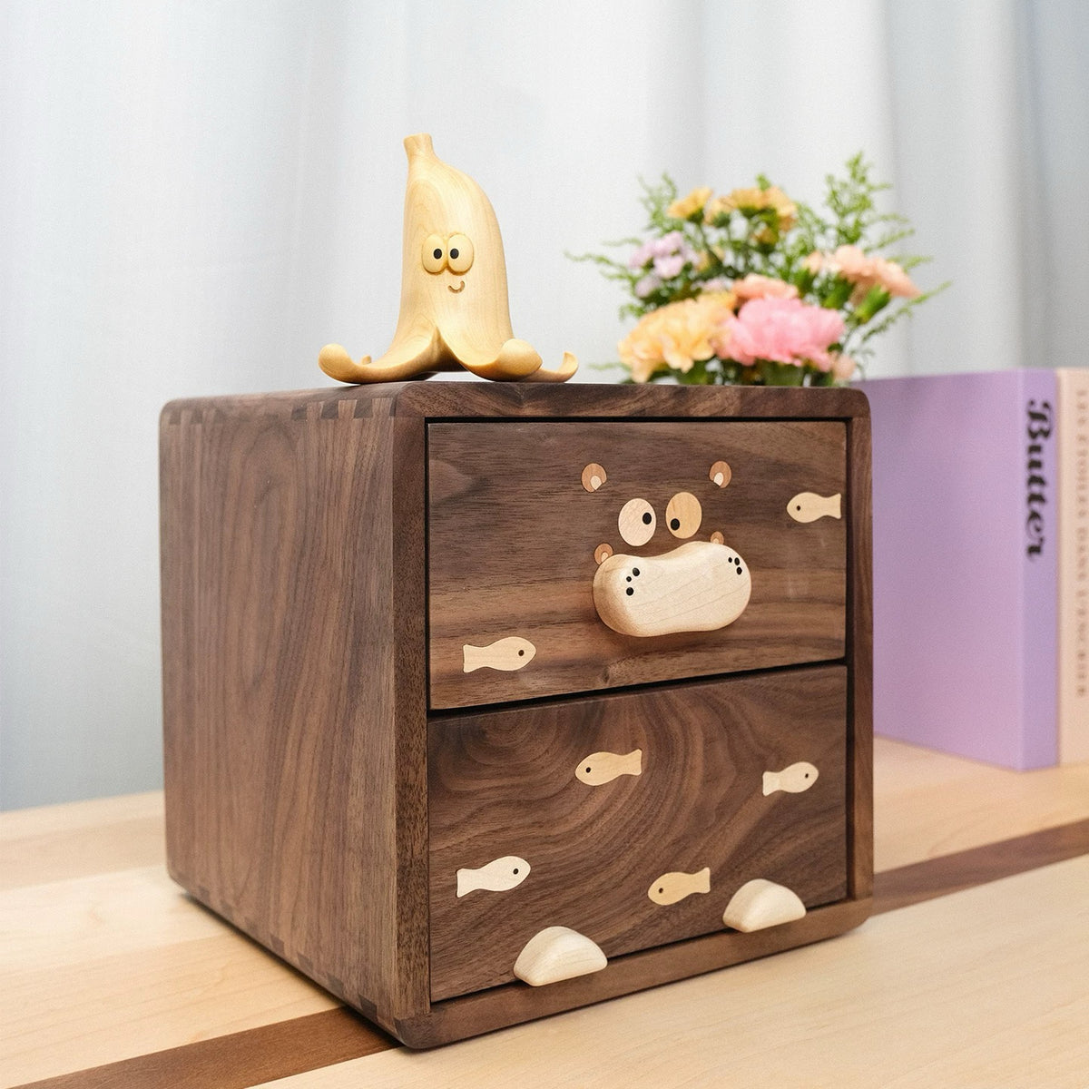 Crafted from solid wood with smooth edges and rich natural grain, each piece features a subtle Hippo-inspired detail that feels playful — but still grown-up and elegant.
