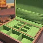 Elegant walnut jewelry box with glass top design
