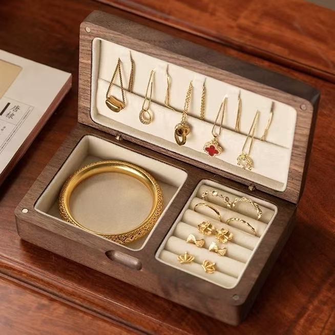 ☕️ Crafted from high-quality black walnut and Burmese rosewood, this retro jewelry box combines elegance and practicality. The thoughtful compartmentalization ensures that your jewelry stays organized and free from tangling, while the natural wood grains and painted finish add an artistic touch to your space. It’s not just a jewelry box, but a statement piece that brings both beauty and function to your home.